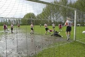 Verslemping is het ontmengen van bodemdeeltjes, waarbij met name de hele fijne delen (bijvoorbeeld < 63mu) een probleem vormen. Het bovenste laagje, zo'n 1 à 2 cm dik, kan in deze natte perioden gemakkelijk dichtslaan, waardoor de toplaag te lang nat blijft en er dus een glad speeloppervlak ontstaat. Vaak hoopt ook dood organisch materiaal zich in de toplaag op, wat het indringen van vocht en zuurstof belemmert. Bij een drogere periode zal dan later een hard korstje ontstaan. Noodzakelijke onderhoudsmaatregelen zoals wiedeggen, slitten, prikrollen en bezanden helpen bij het luchtig houden van de toplaag.
