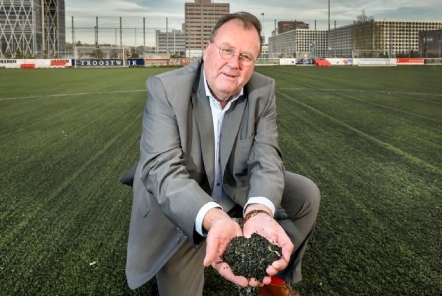 Vraagtekens Het RIVM-rapport gaat ook in op de aanwezigheid van zink in het milieu door de rubberkorrels. Op sommige plekken zijn zinkwaarden gemeten die hoger liggen dan de norm. Recybem stelt wel vraagtekens bij de wijze van meten. Van Oostenrijk: 'De bodemmonsters bevatten maximaal 3,5% rubberkorrels, blijkt uit het rapport. Vervolgens is de bodem met rubberkorrels en al gemeten op de aanwezigheid van zink, maar hierdoor is het zink in de rubberkorrels zelf gemeten. De grond is niet eerst gezeefd voordat er werd getest. Dit zegt dus nog steeds niks over de mate waarin zink daadwerkelijk in de bodem zelf terecht komt. Wij weten van diverse eerdere onderzoeken van gemeenten dat bij goed aangelegde velden geen zink in de bodem onder de velden terecht komt. Verder is in het Stowa-onderzoek duidelijk geworden dat het water in de sloten rond de velden en het grondwater geen meetbare sporen van zink of andere metalen bevatten. Dit lijkt dus een beheersbare situatie, zeker als de korrels zelf uit de bermen worden verwijderd.'