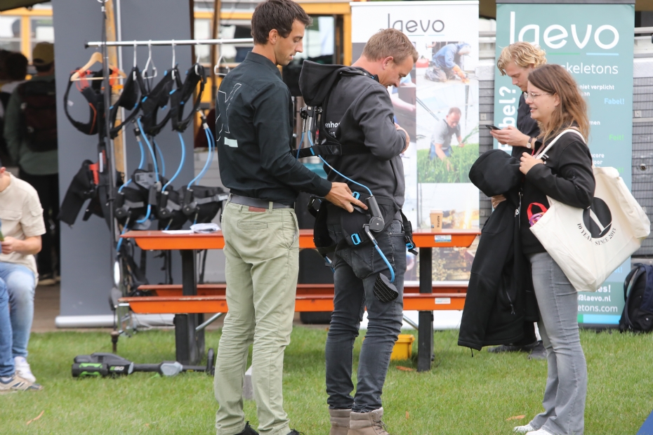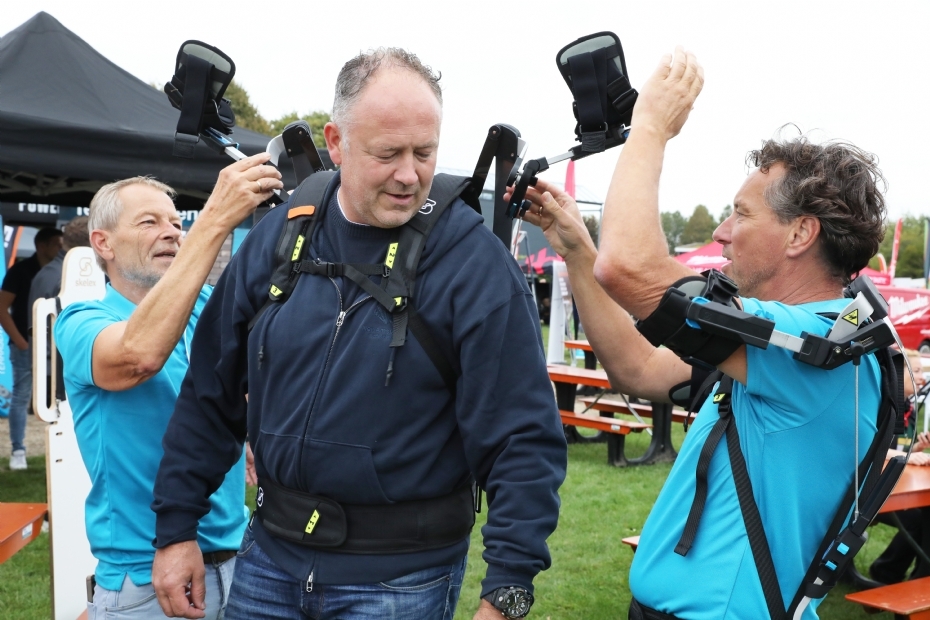|  | Zelf kijken of een exoskelet wat voor je was, kon ook. De aanwezigen leveranciers op het exoskelettenplein waren: SpanSet, Skelex, ExoSustain, Laevo en De Wild. |