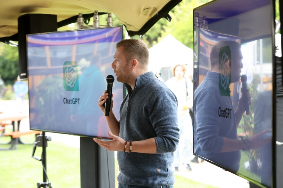 |  | Cor Simon van OntwerpAcademie trok veel bekijks met zijn lezing over ontwerpen met AI. |